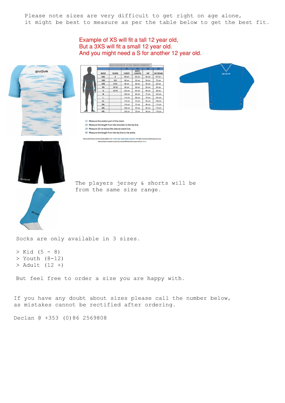 SelectTraining gear combo, Jersey, Black Shorts, Sky blue socks. (shorts and socks are club colours and will do for match day). Orders will be placed on the last day of each month. With a delivery date circa 3 weeks later.